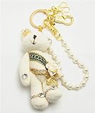 キーホルダー(キーチャーム)&バッグチャーム キラキラビジュー パールチェーン くまチャーム BOY アイボリー