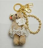 キーホルダー(キーチャーム)&バッグチャーム キラキラビジュー パールチェーン くまチャーム GIRL ベージュ